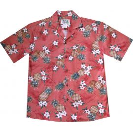 AL-403WC- Plumeria & Hibiscus White Coral Cotton Mens Hawaii