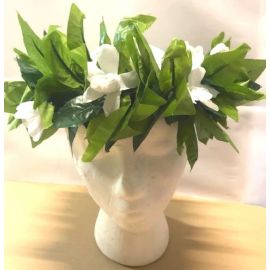 Item Name: MAILE TUBEROSE HEADBANDItem Number: MTR-HB612Item Code: 00612Maile Leaf with Tuberose Flower headband. Perfect for performance. Elastic strap. One size fits all..