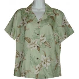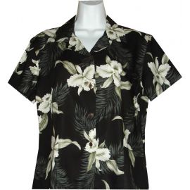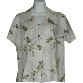 GAL-434NB- Cotton WoMens Aloha Blouse Orchid Hibiscus Panel