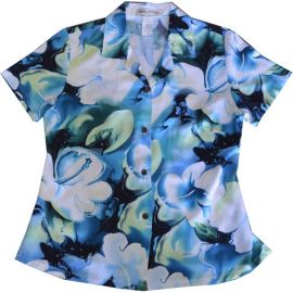 GAL-827BL - Rayon WoMens Aloha Blouse Watercolor Hibiscus