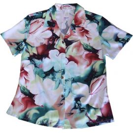 GAL-827R - Rayon WoMens Aloha Blouse Watercolor Hibiscus