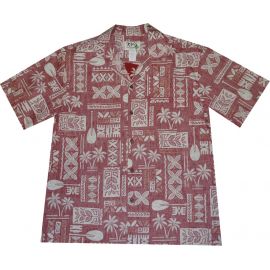 AL-524R- Abstract Pineapple Red Aloha Shirt