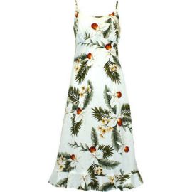 Spaghetti Strap Mid-length Dress Hawaiian Orchid White