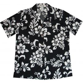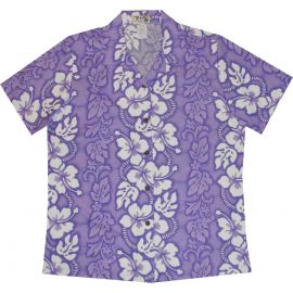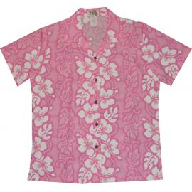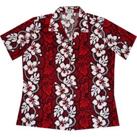 LAL-300R-Ladies Cotton Camp Aloha Shirt Hibiscus Lei