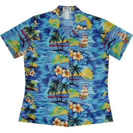 LAL-410BL - Ladies Cotton Camp Aloha Shirt Pineapple