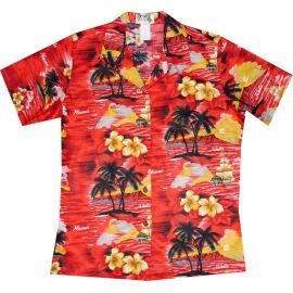 LAL-304R - Ladies Cotton Camp Aloha Shirt Hawaii Sunset