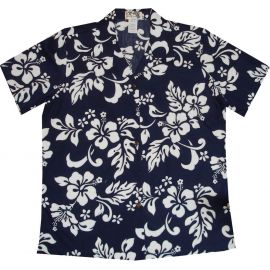 LAL-300NB-Ladies Cotton Camp Aloha Shirt Hibiscus Lei