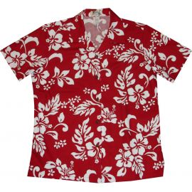 LAL-354R-Ladies Cotton Camp Aloha Shirt Original Hibiscus