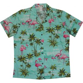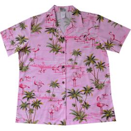 LAL-406B - Ladies Cotton Camp Aloha Shirt Pink Flamingo Island