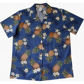 LAL-410NB- Ladies Cotton Camp Aloha Shirt Pineapple