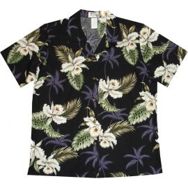 LAL-434 WNB- Ladies Cotton Camp Aloha Shirt Orchid Hibiscus Pane