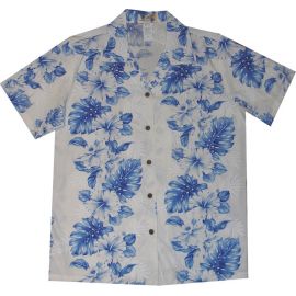 LAL-449G -Ladies Cotton Camp Aloha Shirt Hibiscus Panel