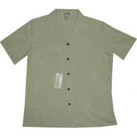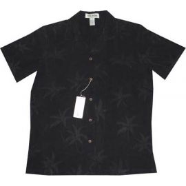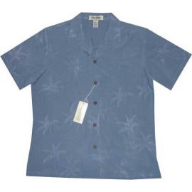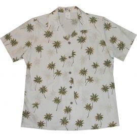 LAL-435W -Ladies Cotton Camp Aloha Shirt Palm Trees Island