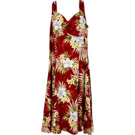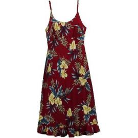 Spaghetti Strap Mid-length Dress Hawaiian Orchid Red