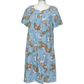 5M-410BL- Pineapple blue Cotton Hawaiian Muumuu Dress