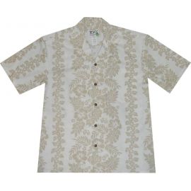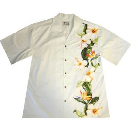 ALB-437G- Hibiscus Shining Panel White Cotton Mens Hawaiian Shir