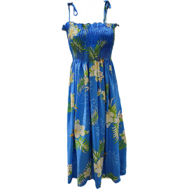 Tube Top Dress Fern Hibiscus Blue