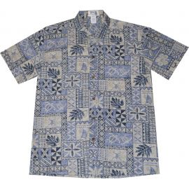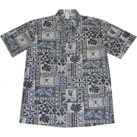 ALS-378 B- Block Honu Tapa Cotton Slim Fit Hawaiian Shirt