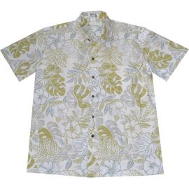 ALS-523W -Vintage Monstera White Cotton Slim Fit Hawaiian Shirt