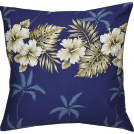 PL412NB-Vintage Hibiscus Navyblue Pillow Case
