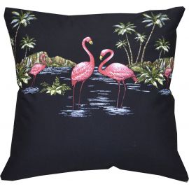 PL447B- Flamingo Paradise Island Black Pillow Case