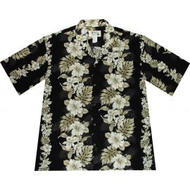AL434B- Orchid Hibiscus Panel Black Aloha Shirt