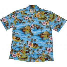 AL-525BL- Pali Lookout Rooster Blue Aloha Shirt