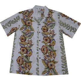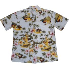 AL-525W - Pali Lookout Rooster White Aloha Shirt