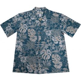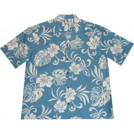 AL486BL-Classic Hibiscus Blue Aloha Shirt