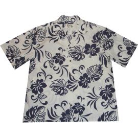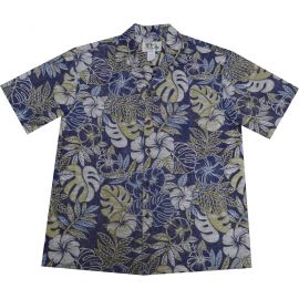 AL486NB-Classic Hibiscus Navy Aloha Shirt
