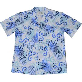 AL-524BL - Abstract Pineapple Blue Aloha Shirt