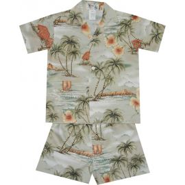 Take in the sights and sounds of Hawaii with your little one in a matching Hawaiian shirt set...