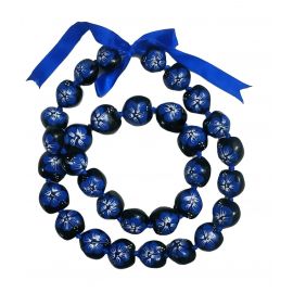 32 Best Quality Hawaii Hibiscus Flower Kukui Nut Necklace Lei Dark Blue