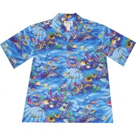 AL-411NB- Hanauma Bay Navy Blue Aloha Shirt