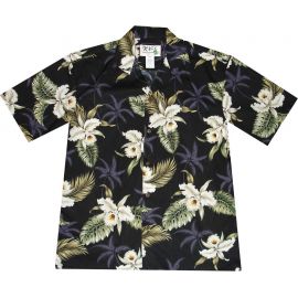 AL-422B-Parrot Palm Leaf Black Aloha Shirt
