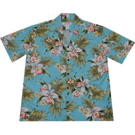 AL-816BL - Makaha Orchid Blue Rayon Mens Aloha Shirt