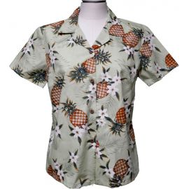 GAL-410G-Cotton WoMens Aloha Blouse Pineapple