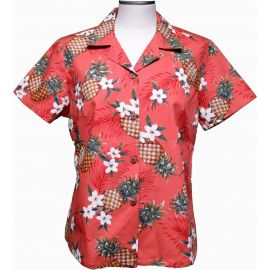 GAL-410R -Cotton WoMens Aloha Blouse Pineapple