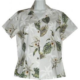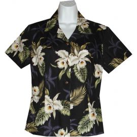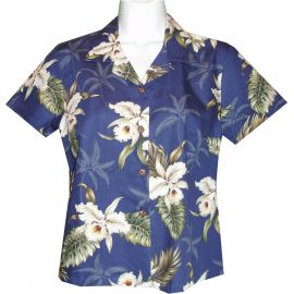 GAL-434NB- Cotton WoMens Aloha Blouse Orchid Hibiscus Panel