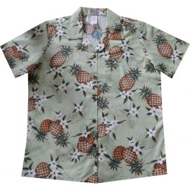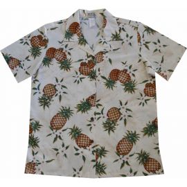 LAL-410G- Ladies Cotton Camp Aloha Shirt Pineapple
