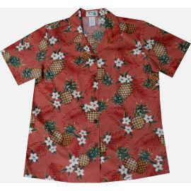 LAL-410R- Ladies Cotton Camp Aloha Shirt Pineapple