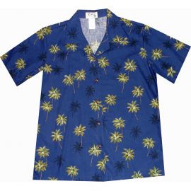 LAL-435NB -Ladies Cotton Camp Aloha Shirt Palm Trees Island