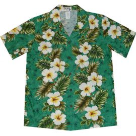 LAL-449G -Ladies Cotton Camp Aloha Shirt Hibiscus Panel