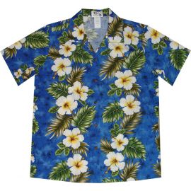 LAL-449NB -Ladies Cotton Camp Aloha Shirt Hibiscus Panel