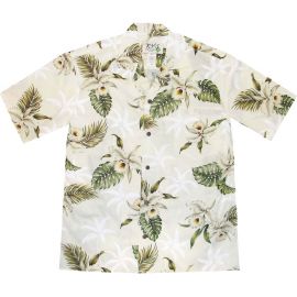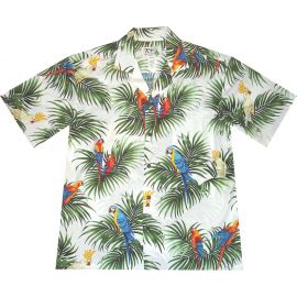 AL-422W - Parrot Palm Leaf White Aloha Shirt