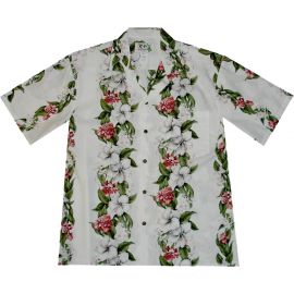 AL-434W- Orchid Hibiscus Panel White Aloha Shirt