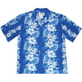 AL-434WN-Orchid Hibiscus Panel White Blue Aloha Shirt