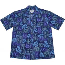 AL-521 NB-Mystical Tapa Navy Aloha Shirt