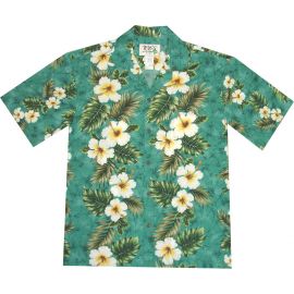 AL-449G-Hibiscus Panel Green Aloha Shirt