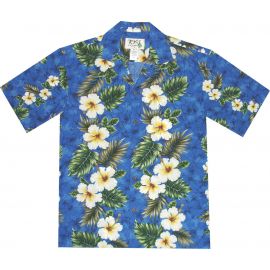AL-465 NB-Bamboo Panel Blue Aloha Shirt